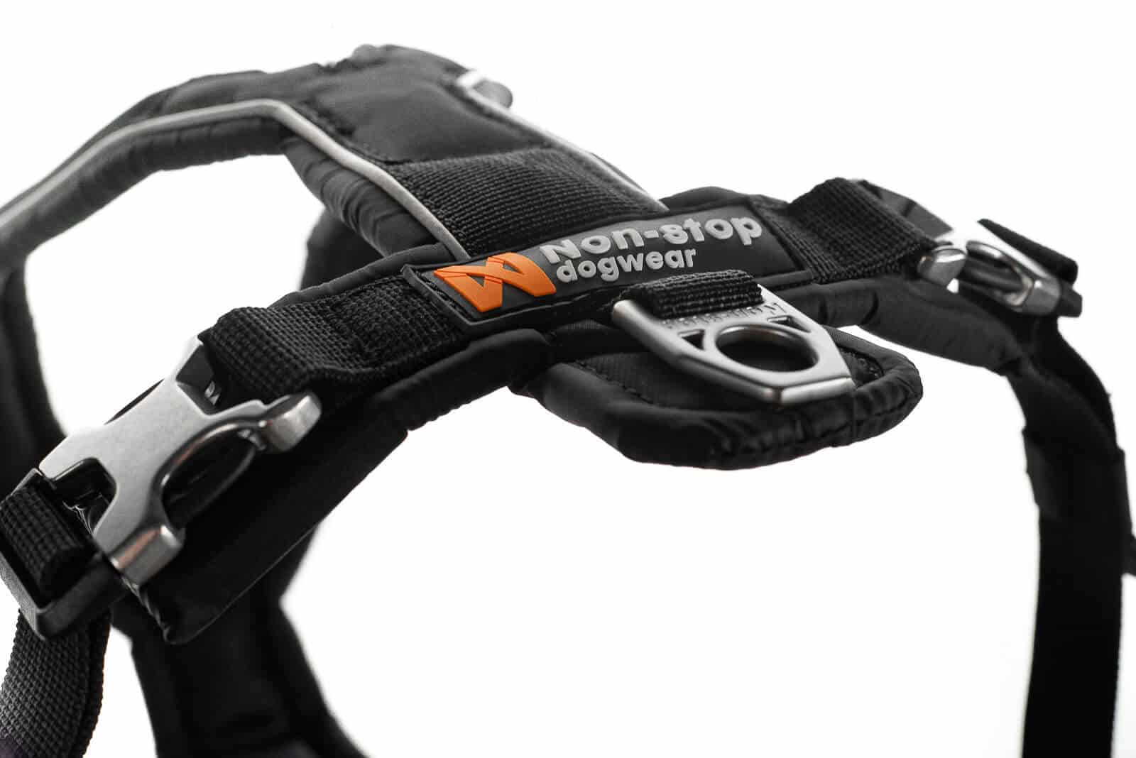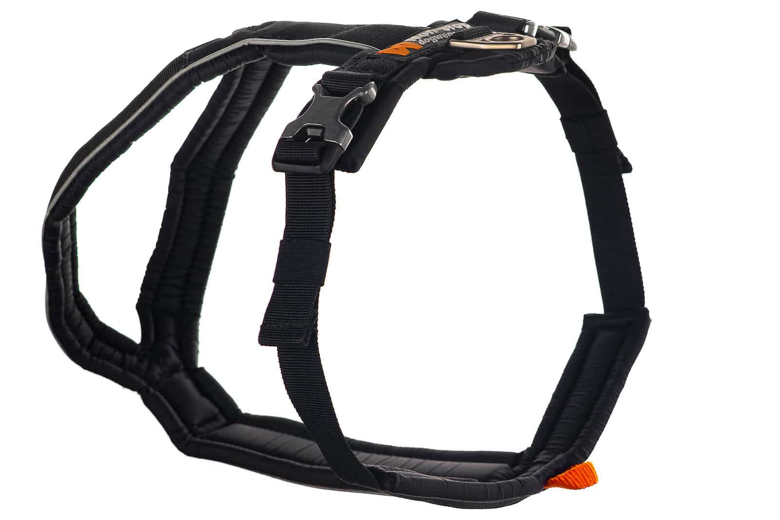 Nenasiakavé polstrovanie, 500D Nylon, Nylon, zosilnenie Hypalonom, 3M reflexné prvky, Hliníkoplastová pracka Duraflex, Oceľový krúžok pre pripevnenie vodítka, Nylonové pútko pre pripojenie stopovacieho vodítka, Nylonové pútko na hrudníku s jemným "protitahacím" účinkom (od veľkosti 4)